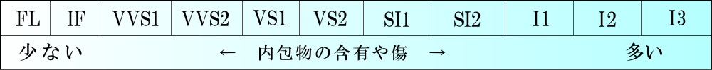 ダイヤ4C ホーム > ダイヤ4C ダイヤモンド4C 4Cとは、ダイヤモンドの品質を評価する基準4つの要素で、カラット・カラー・カット・クラリティの各要素の頭文字に「C」がつくことから「4C」と呼ばれています。ダイヤモンドの価値は、この4Cで決まります。 Carat カラット 宝石の重さを表す単位で、1ctは0.2gです。大きいダイヤモンドは採取量も少なく希少価値も有りますが、しかしキズや インクルージョン(内包物)、カラー、カットの程度により、カラットの小さいダイヤモンドのほうが、大きい物よりも価格が上回ることもあります。 Color カラー ダイヤモンドのカラーグレイドの上位は無色透明に近いDカラーを最高の評価とし黄色味が強くなるZカラーまでの23段階で評価されます。 Clarity クラリティ 透明度(クラリティ)は、10倍に拡大検査しインクルージョン(内包物)の有無により、FL(フローレス)を最高評価として最下位のI3まで11段階で評価いたします。 Cut カット ダイヤモンドの一番の魅力はその輝きです。ダイヤモンドの理想のカット(プロポーション)を基に総合評価いたします。3Excellent(トリプルエクセレント)・Excellent(エクセレント)・very good(ベリーグッド)・good(グッド)・Fair(フェアー)・Poor(プアー)今は六段階で評価いたします。 ダイヤモンドの隠れた評価 *光輝(てり) 4Cでは記載されない光輝(てり)が査定には大きく左右されます。1)鑑定書に記載されております(蛍光性の強弱・LDHの痕跡・1ct直径 6.3mm以下・0.5ct 直径5mm以下)2)鑑定書に記載されていない(照り・欠けダイヤ・カーボンの有無)(上記のような1,2のダイヤモンドは、5%~50%減額査定対象) 鑑定書について ・GIA・CGL(中央宝石研究所)・AGTを基準としてこの機関が発行したもの。・その鑑定書は5年以内 「期限が過ぎた鑑定書はソーテイングレポートをとり直します」。・他機関が発行したものは再鑑定後の評価となります。・ダイヤモンド鑑定及び(ソーテイング)依頼は、鑑定機関に依頼するには裸石でなければなりませんのでご了承ください。 (枠についていては正しい鑑定ができないからです)。 【鑑定書、鑑別書】一緒にお考えのお客さまもおられますが全く別のものであり、枠付きでは鑑定書は発行されません。 【茨城県警察署管内】「龍ヶ崎警察署、牛久警察署、取手警察署、稲敷警察署、土浦警察署、石岡警察署、」6署様から遺失物の買取り及び鑑定依頼を、「茨城県警察本部」様、【水戸地方裁判所(土浦支部)】様よりダイヤモンド鑑定依頼をいただいており心から感謝を申し上げます。 ジュエリー・ニシオカ 代表 西岡優